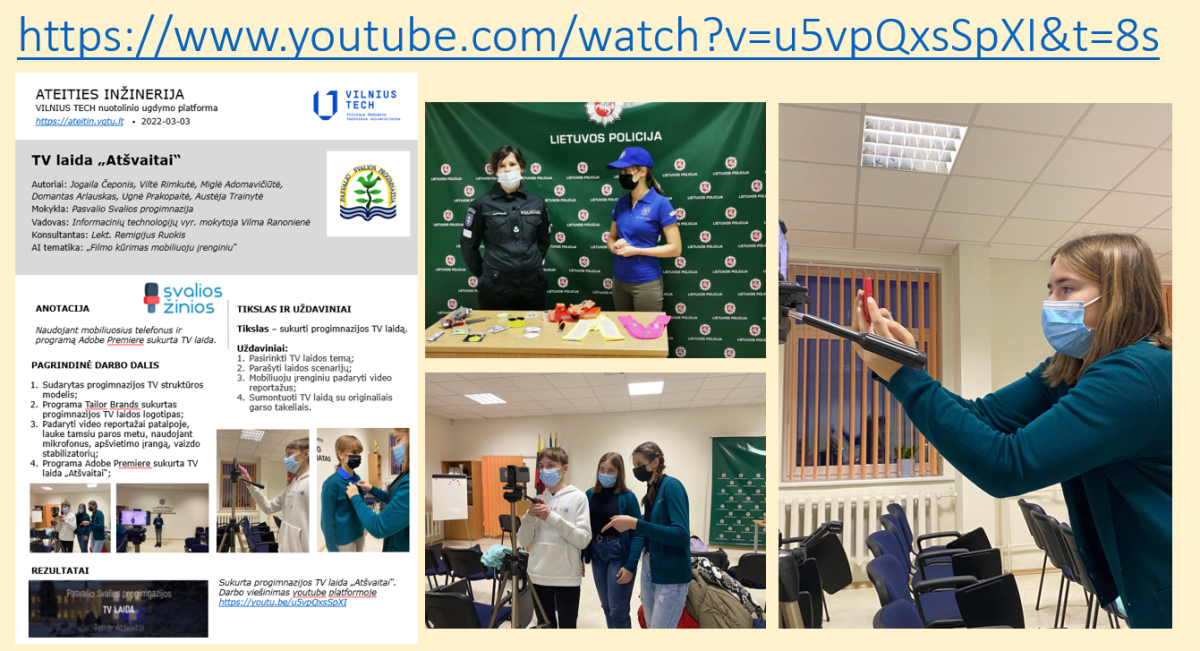 Svalios progimnazijos 8a klasės mokiniai svečiams pristatė savo atliktas STEM veiklas, t. y., bendradarbiaujant su Vilnius Tech sukurtą TV laidą „Atšvaitai“, Svalios progimnazijos skaitmeninį projektą, sukurtą su patalpų projektavimo įrankiu, mokyklos projektus „Muzikinė dėžutė“, „Eglutė“, „Malūnas“.