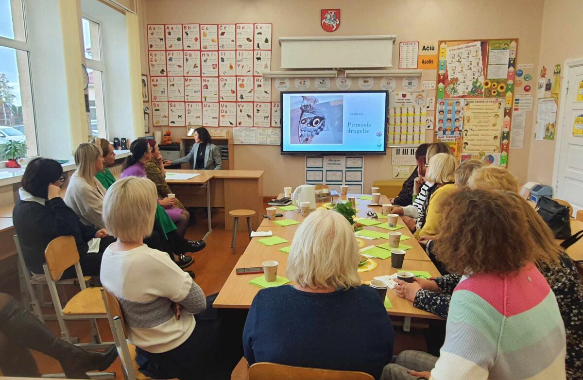Po išsamių ir labai įdomių pranešimų mokytojai tęsė diskusijas, reflektavo dalykinėse grupėse. Pradinio ugdymo metodinėje grupėje Vilma Armonienė pateikė du pranešimus: „Nuo vikšrelio iki drugelio“ bei „Robotai mokykloje“, Aušra Mikalajūnienė pristatė projektą „Kada geriausia sodinti daržą?“, Diana Strakšienė aprodė progimnazijos edukacines erdves. Humanitarinių dalykų metodinėje grupėje pristatytos „Mokinio asmens ūgties“ knygelės, padedančios sėkmingai spręsti ugdymosi problemas, diskutavo apie ugdymo pagal atnaujintas programas sėkmes ir nesėkmes.